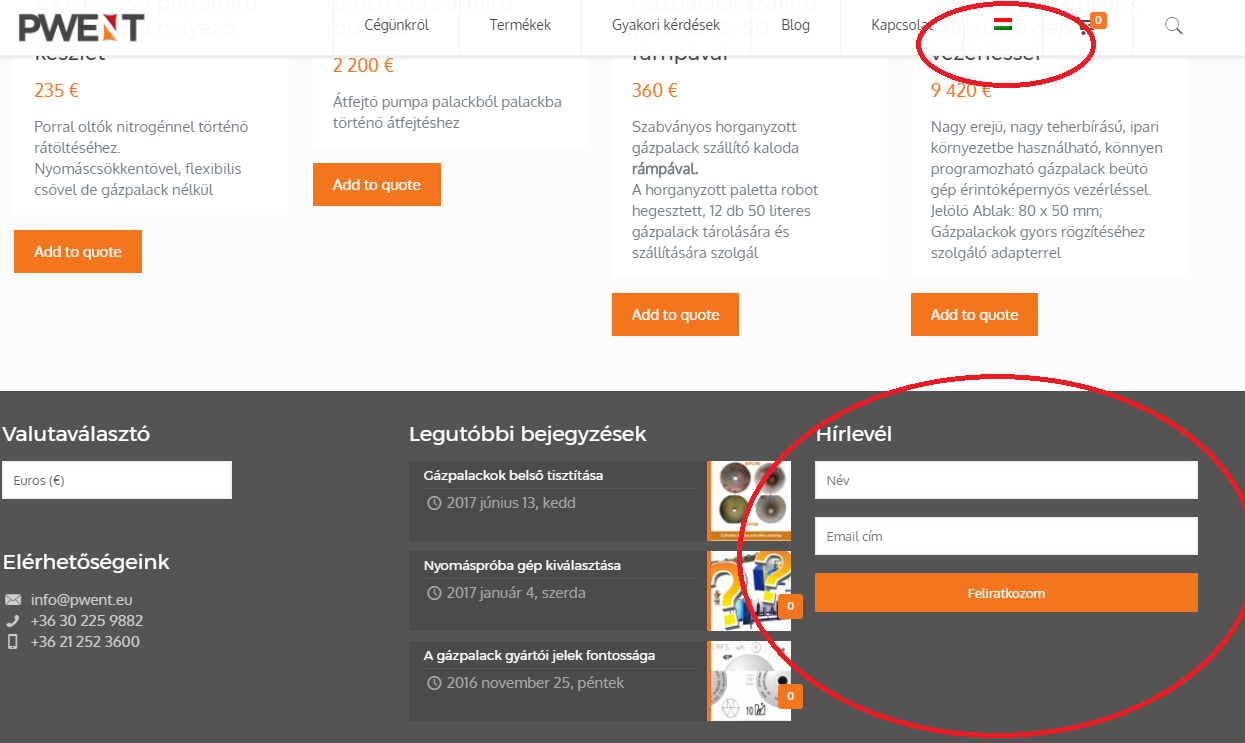 - Hírlevél feliratkozás (2 heti rendszeres híreinkre)